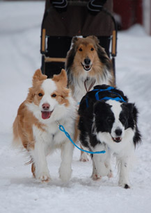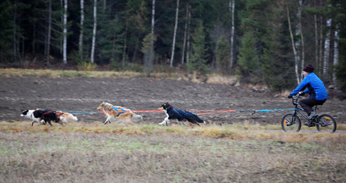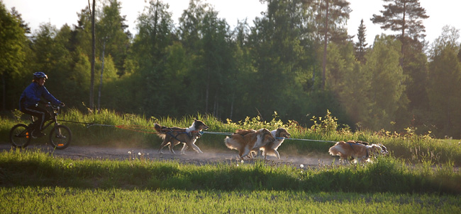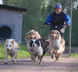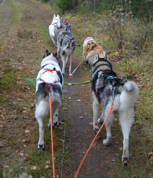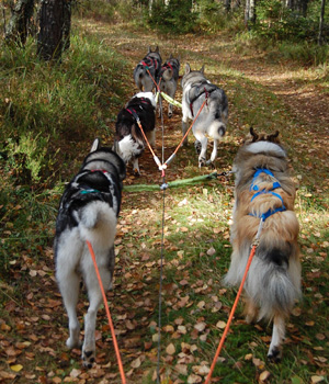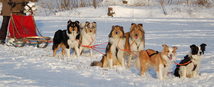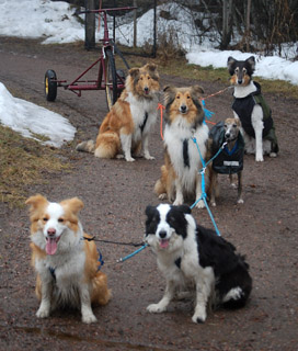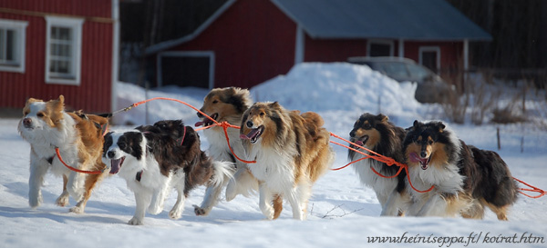 ostin kaikille huskyvaljaat ja aloin opettaa koirille vetoa kelkan